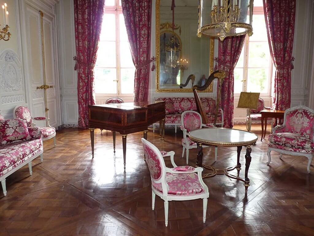 Raffinato salone in stile barocco. Tendaggi e complementi rivestiti in sensuale damasco classico di seta. La classe intramontabile.