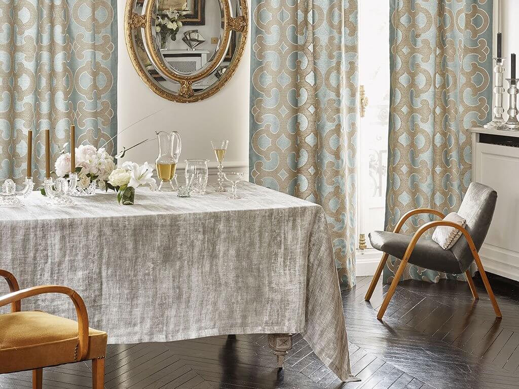Tessuto decorativo ed elegante dallo stile contemporaneo. Il ricamo ricco e e prestigioso ne evidenzia la raffinatezza. Le rifiniture a mano donano movimento, profondità e calore all’ambiente.